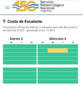 Desde la web oficial del SMN afirman que este martes empezaría a desmejorar el tiempo en la costa de Escalante y no se descartan algunas lloviznas. Mismas que se extenderían por la tarde y noche.