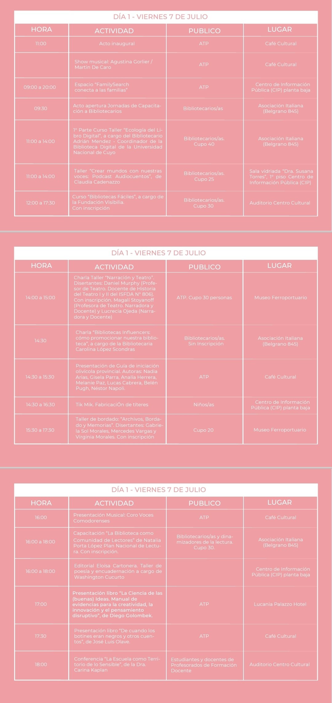 De este modo, el Ejecutivo local articula y distribuyó el evento multitudinario y de interés cultural en varias sedes como el Centro Cultural, Centro de Información Pública (CIP), Museo Ferroportuario, Asociación Italiana, Asociación Portuguesa, Teatro Español, Teatro María Auxiliadora, Hotel Austral y Hotel Lucania Palazzo.