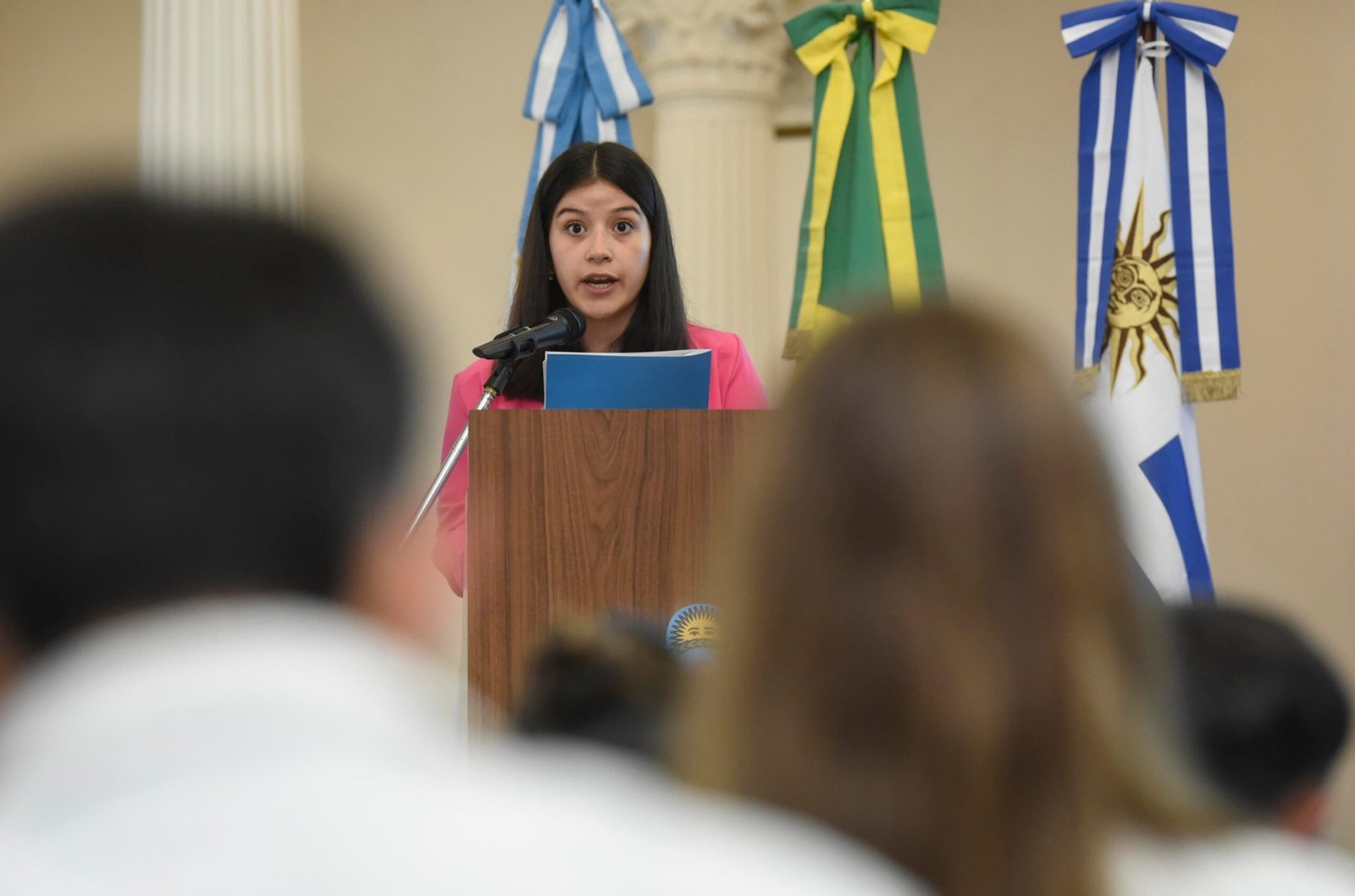 Así fue como los integrantes de la delegación, eligieron a Martina como una de los dos oradores para representar a su país en la lectura del Documento Internacional, que se concretó este lunes 30 en el histórico Salón Blanco de la sede del Ministerio de Educación de la Nación.
