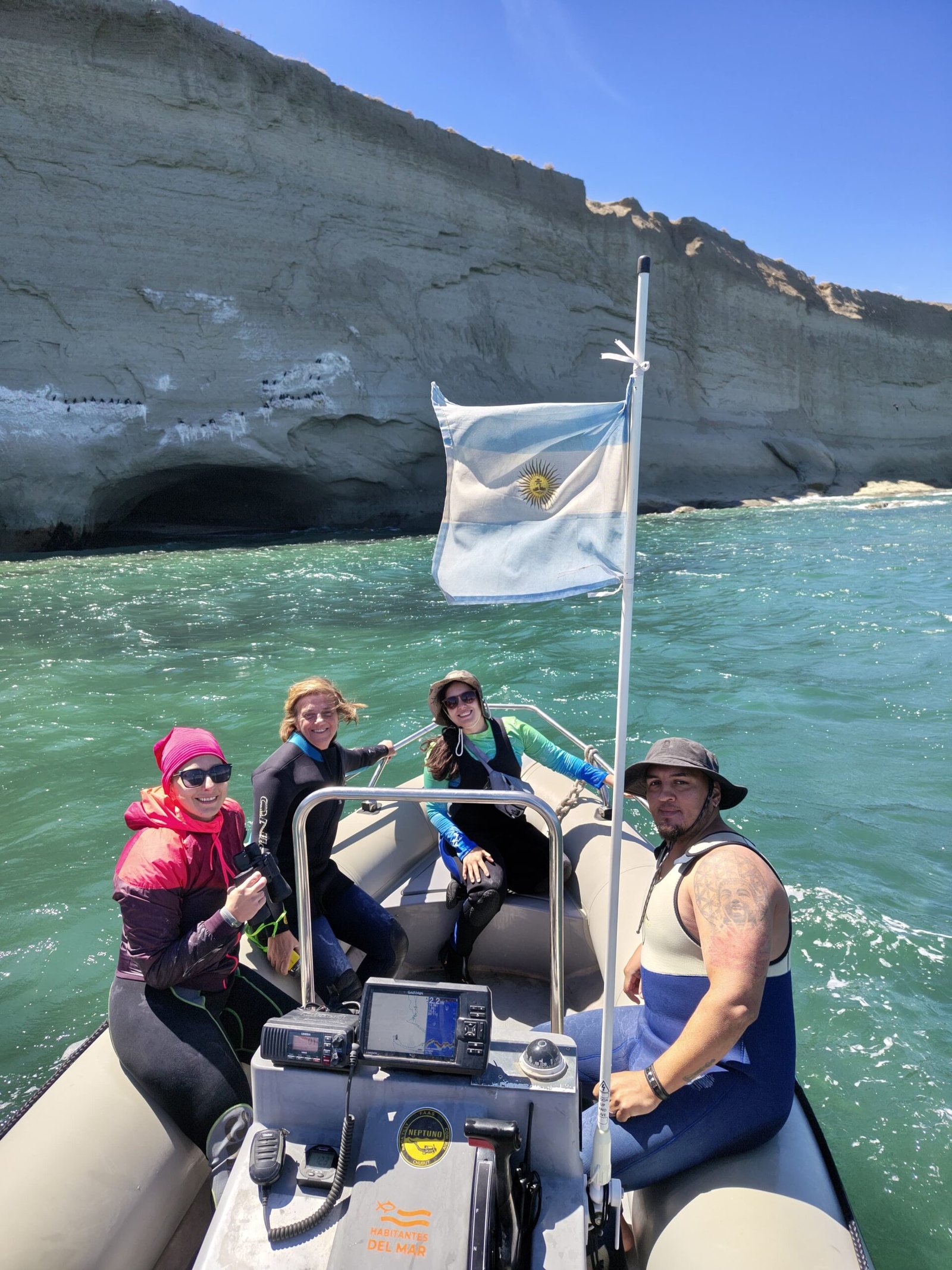 La biodiversidad marina sorprende incluso a los habituales: «Siempre vemos algo distinto». Lobos marinos garantizados en colonias cercanas, delfines cruzándose en el camino y, en temporada, ballenas en su paso migratorio. «Ves de todo tipo de cetáceos: toninas, delfines, lobos marinos… los ves seguro».