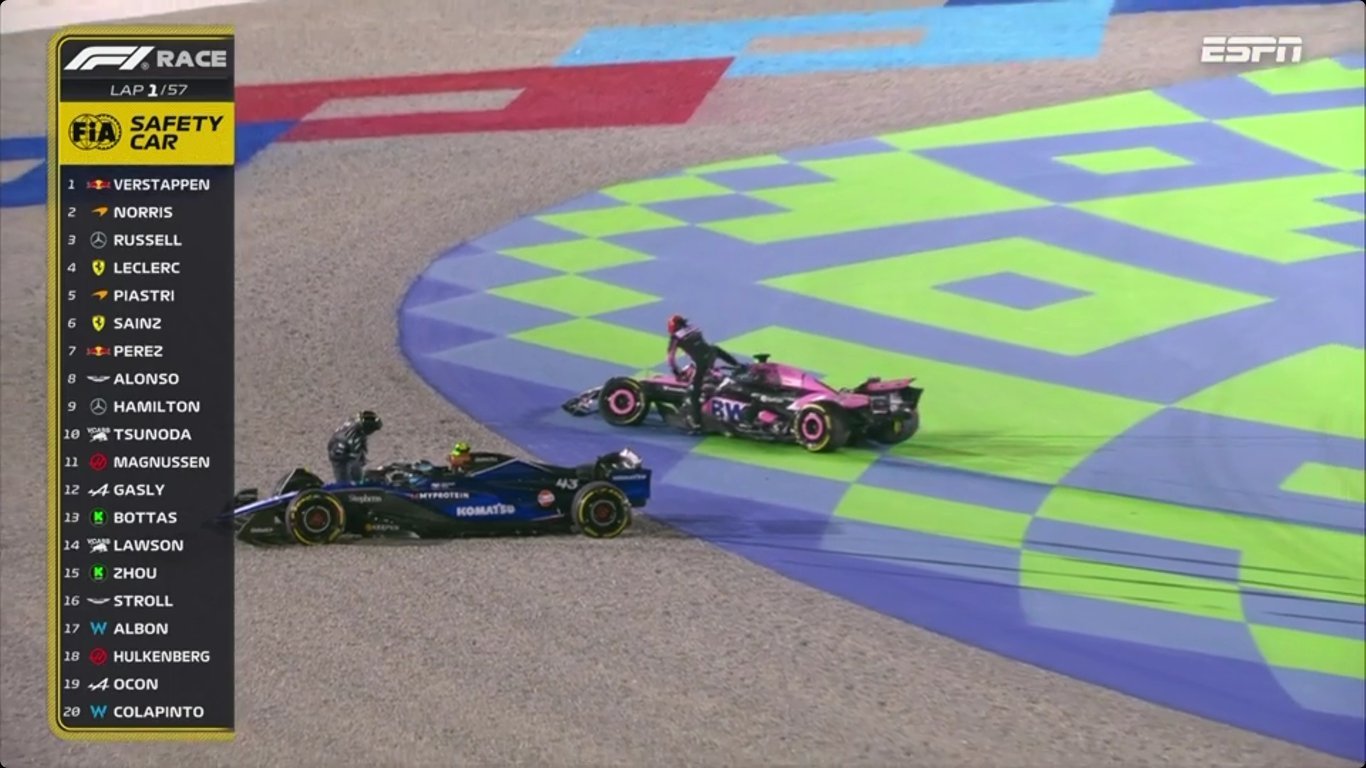 F1: Chocaron a Colapinto en la primera curva y quedó afuera del gran premio de Qatar