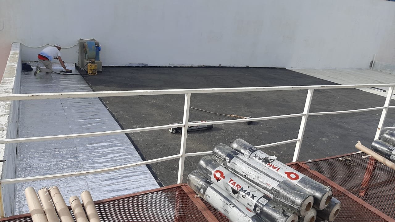 De este modo, debido a las importantes filtraciones ocasionadas por el agua de lluvia en el establecimiento educativo, que dio como resultado el deterioro de la membrana asfáltica, la misma debió ser retirada y reemplazada por una nueva. Por tal motivo, se repararon los sectores afectados y se sellaron las grietas que presentaba la cubierta de techo.