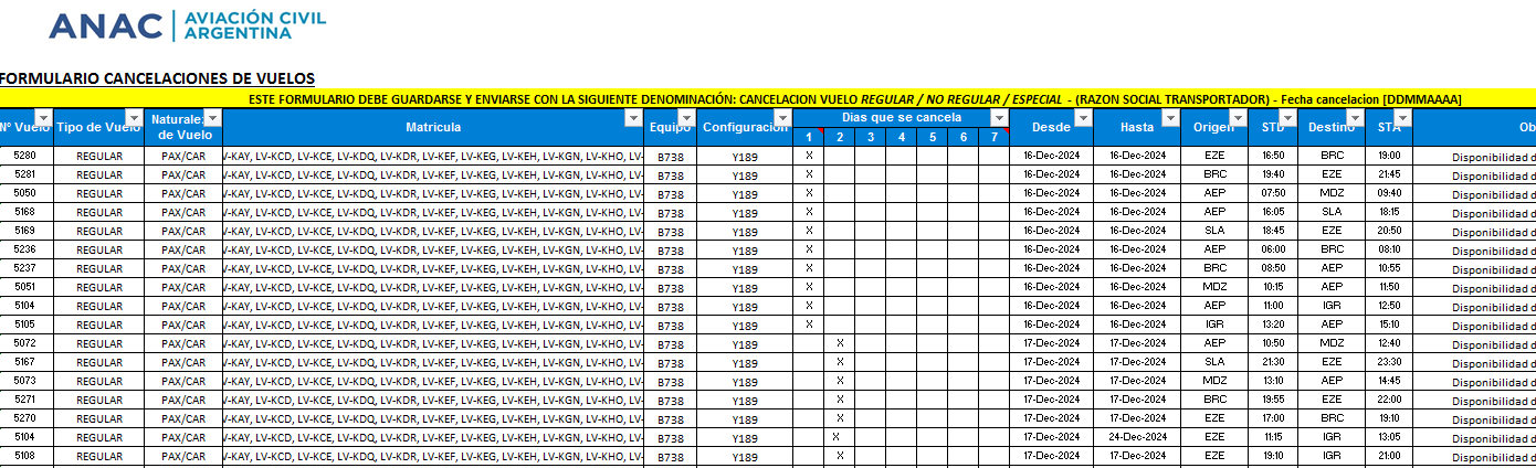 La Administración Nacional de Aviación Civil (ANAC) publicó recientemente un documento que revela la cancelación de 71 vuelos de Flybondi entre el 24 y el 31 de diciembre, afectando a unos 13.000 pasajeros.