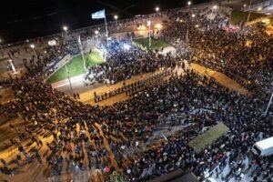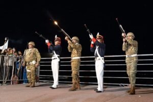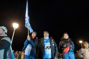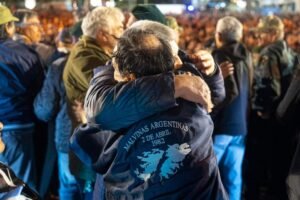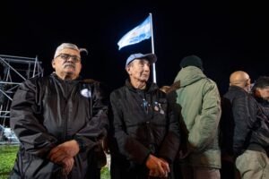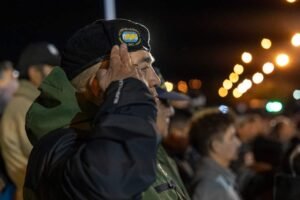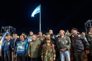 Luego, minutos antes de la medianoche, la masiva convocatoria también participó de la Guardia de las Estrellas en el 42° aniversario junto a los Héroes de la Patria en el Monumento a los caídos en Malvinas.
