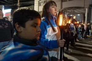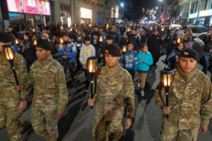 Este lunes 1 de abril por la noche, cientos de personas acompañaron a los veteranos de la Guerra de Malvinas en la Marcha de las Antorchas por las calles de Comodoro Rivadavia.