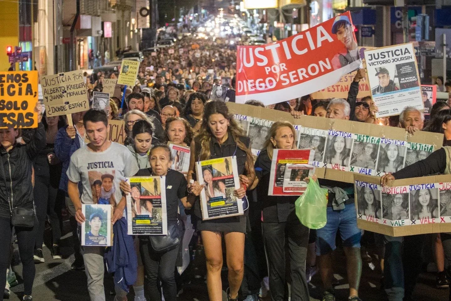 A la misma consigna se le sumó el pedido por la falta de respuestas en los casos de personas desaparecidas, como el de los jubilados Pedro Kreder y Juana Morales, entre otros.