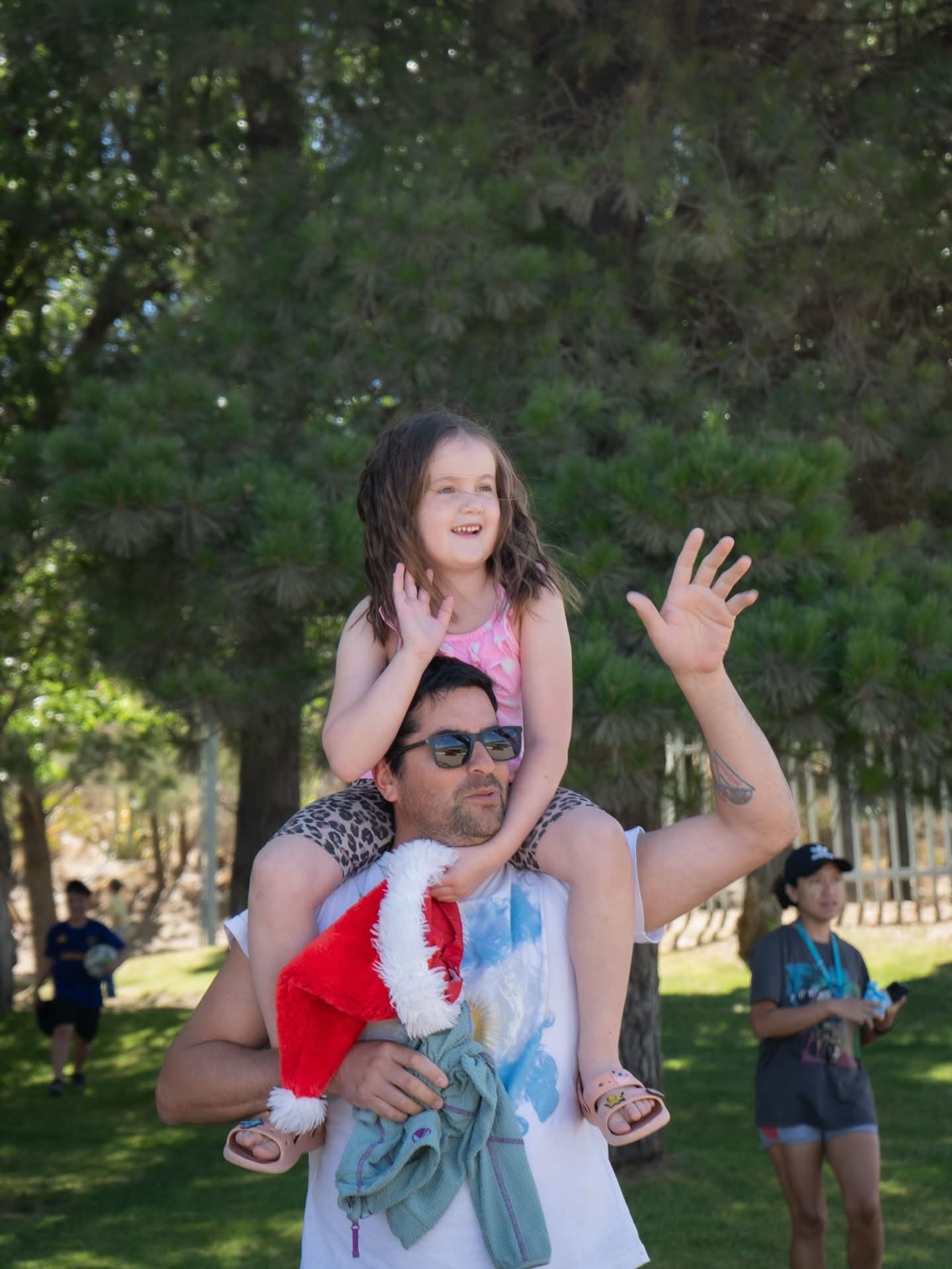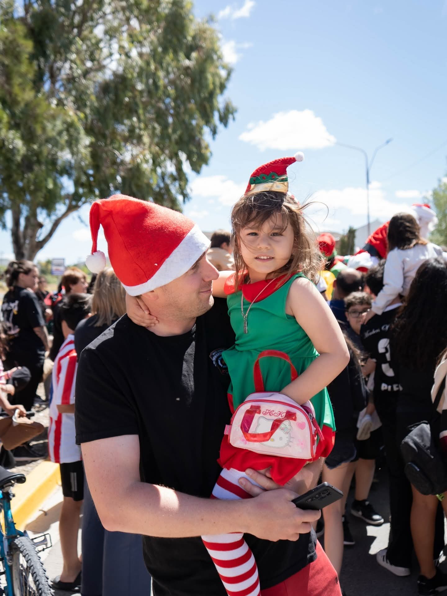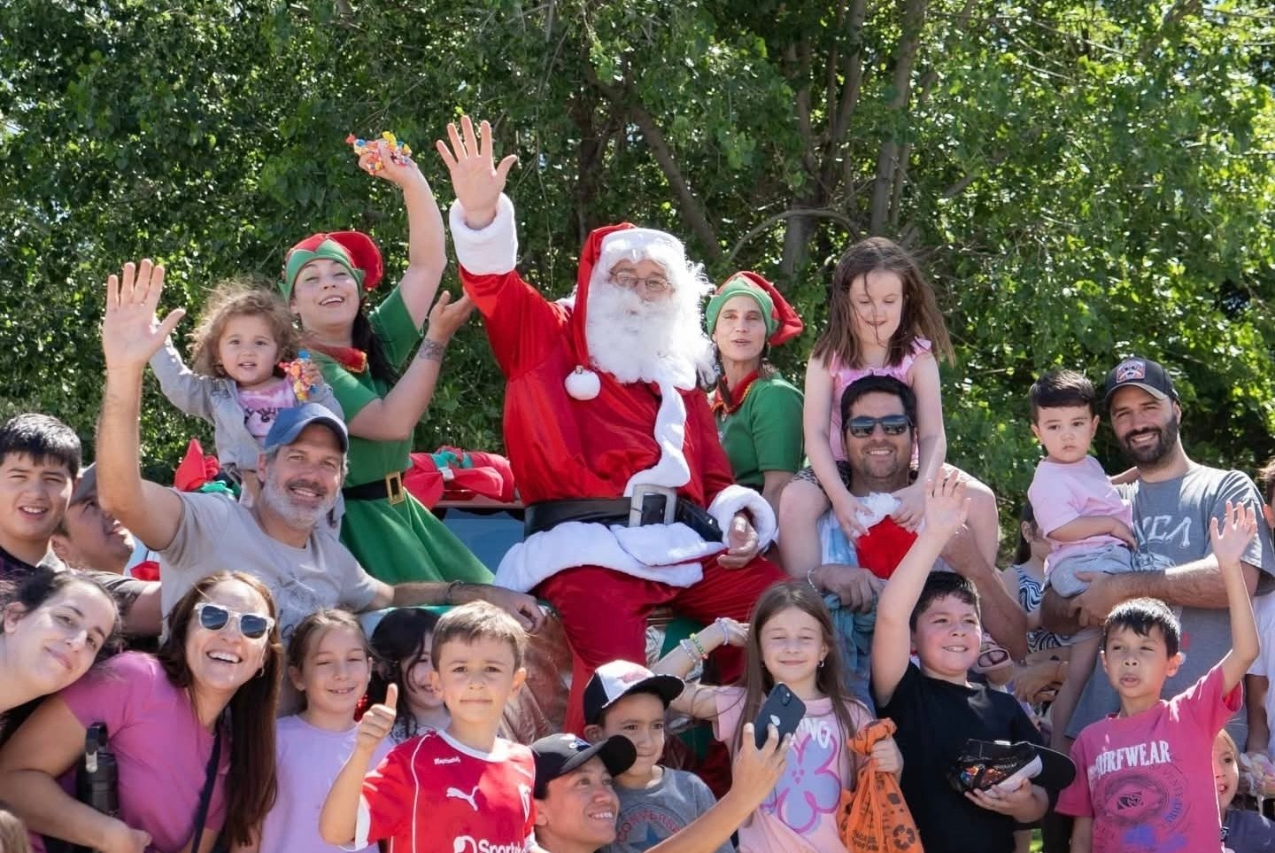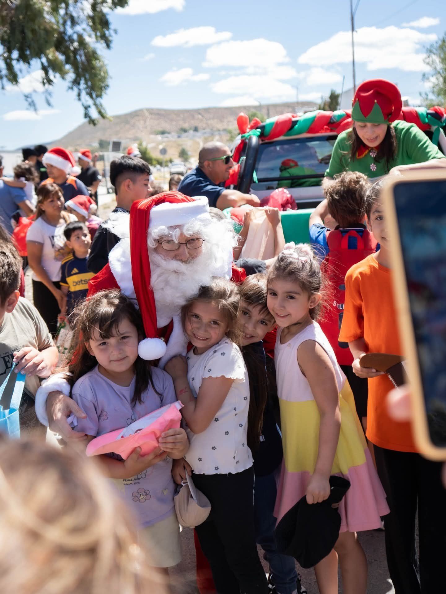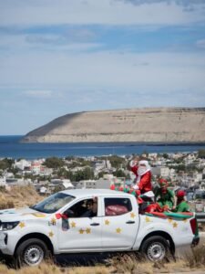 La tarde del pasado miércoles 24 de diciembre tuvo un clima especial en Rada Tilly con la llegada de Papá Noel, que junto a sus duendes realizó un recorrido por distintas plazas de la ciudad y fue recibido por familias, niños y niñas que se acercaron a compartir el momento.