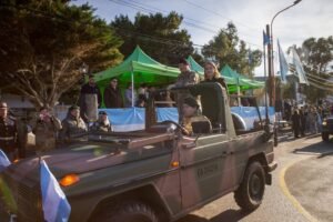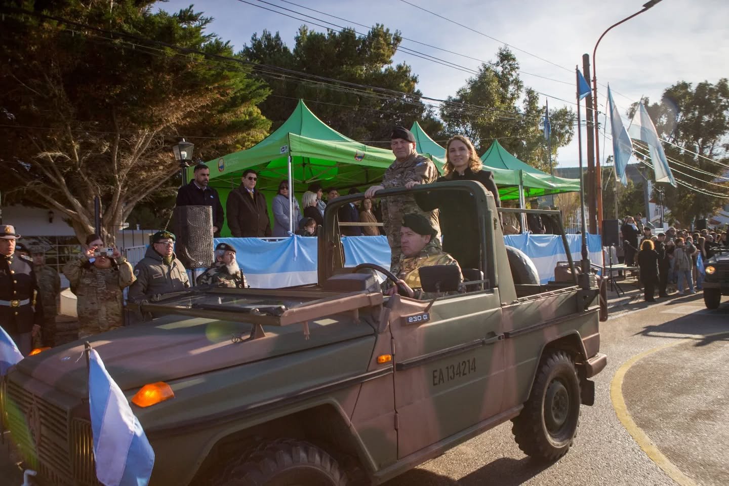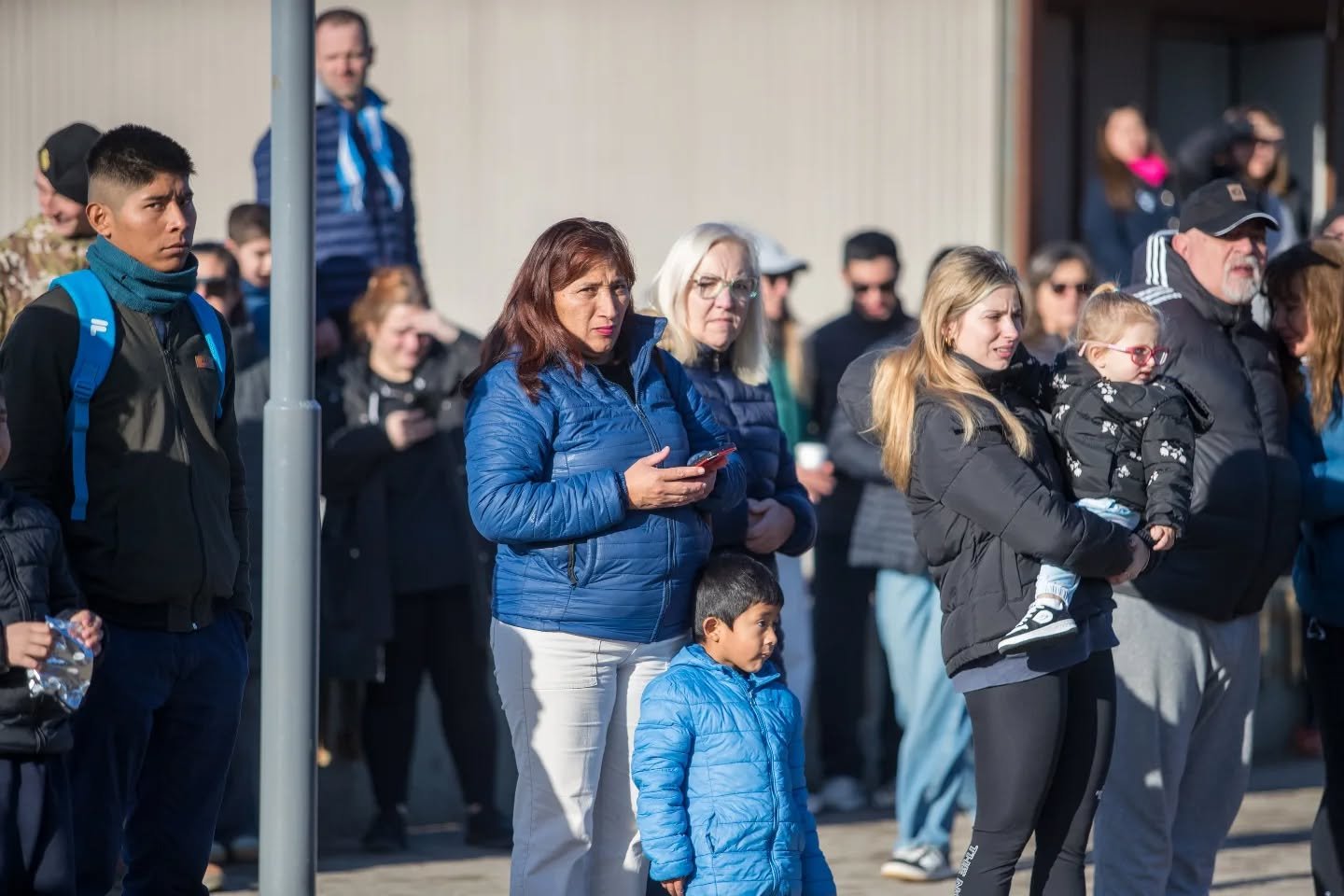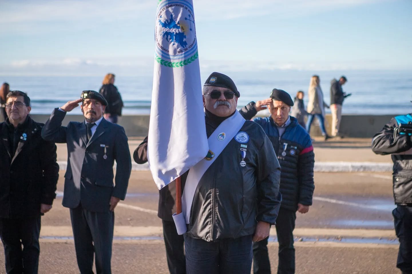 Acompañaron el acto desde el mar embarcaciones del Club Náutico Rada Tilly portando la bandera argentina, integrantes de Paralelo 46 en kayaks y Que Fluya en tablas de SUP. Posteriormente, los presentes disfrutaron de un desfile cívico-militar que recorrió el sector costero, destacándose la participación de veteranos de guerra, personal militar, vehículos de las fuerzas armadas, la comisaría del Distrito Rada Tilly, los Bomberos Voluntarios y Primeros Auxilios de Rada Tilly, instituciones sociales y deportivas. Como cierre del encuentro, se compartió chocolate caliente y tortas fritas, en un momento de encuentro de la comunidad.