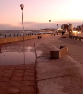 Lo cierto es que esta vez la fuerza de la marejada terminó causando algunos destrozos en la zona. Piedras en las sendas peatonales, gran acumulación de agua en calles aledañas, baldosas salidas y hasta un banco totalmente arrancado.