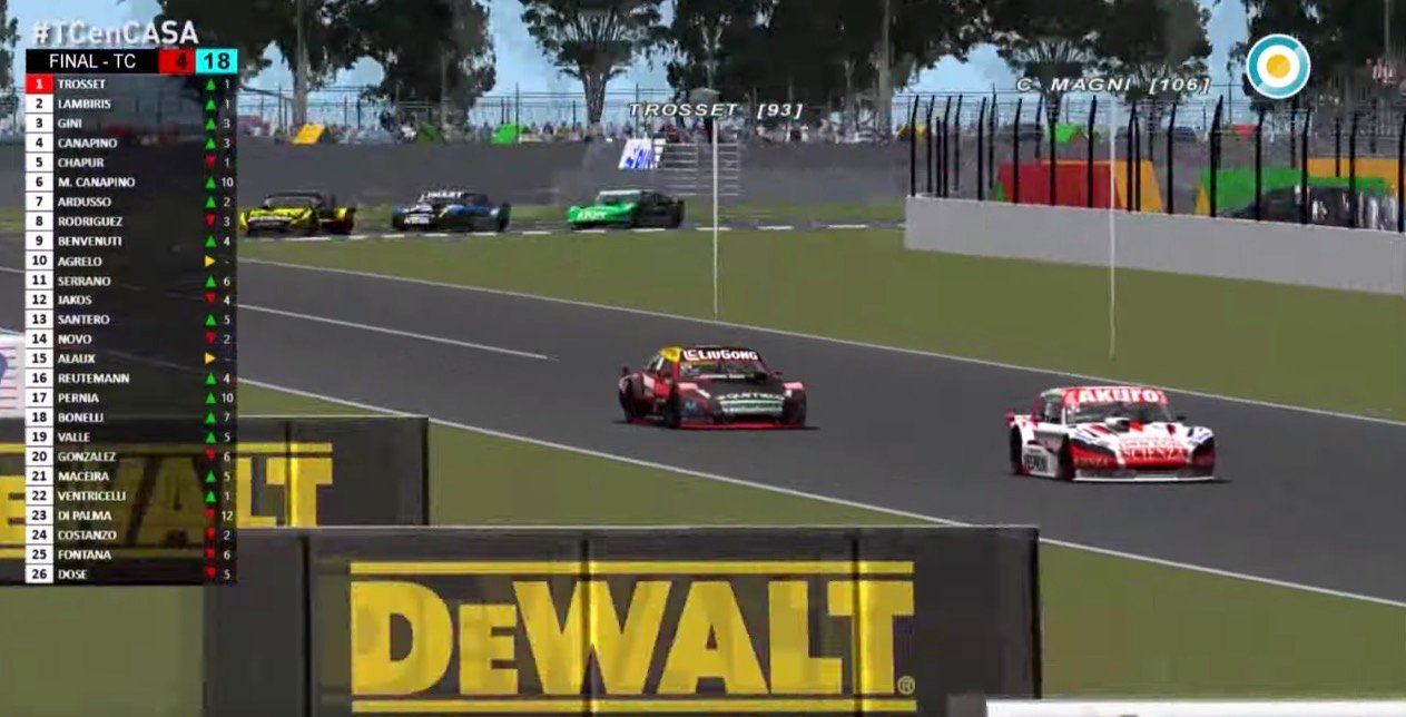 Gran carrera de Marcelo Agrelo en el comienzo de la Copa de Oro del TC virtual en el autódromo de Buenos Aires, termino en la cuarta posición.