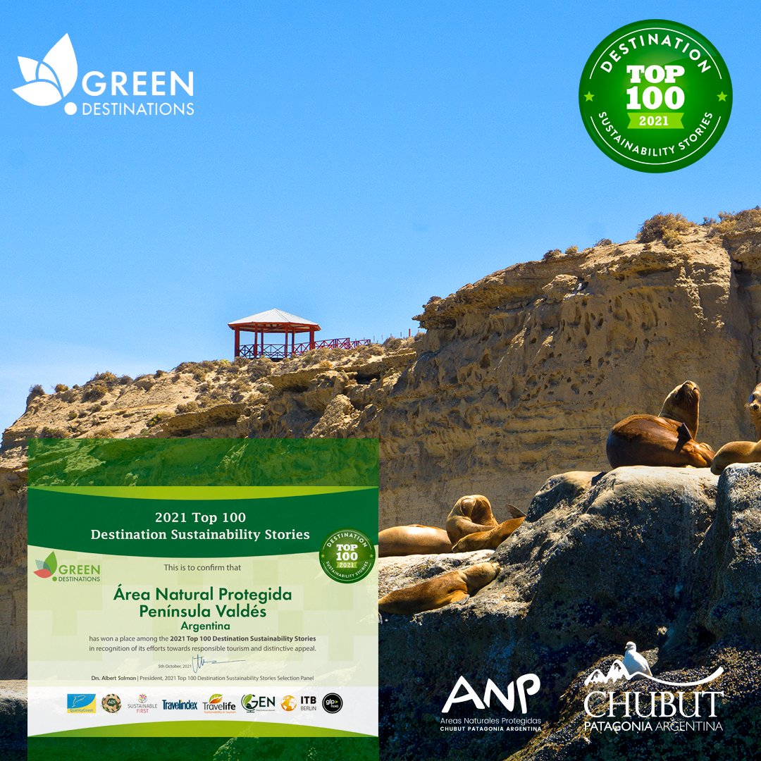 Las Áreas Naturales Protegidas Península Valdés y Lago Baggilt fueron seleccionadas recientemente como parte del «Top 100 Destination Sustainability Stories», tras aplicar en un concurso que lleva a cabo anualmente la Asociación “Green Destinations” con el fin de reconocer destinos sustentables.