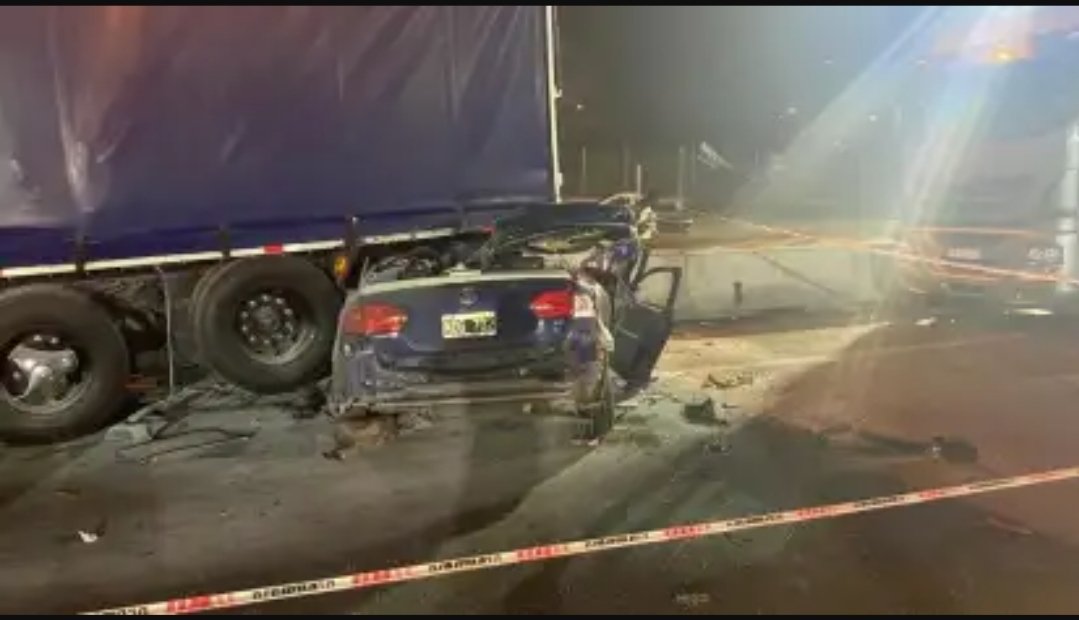 Tres personas fallecieron y una sufrió heridas de gravedad tras un impresionante choque entre un auto y un camión que se encontraba estacionado en la Autopista Panamericana.