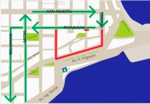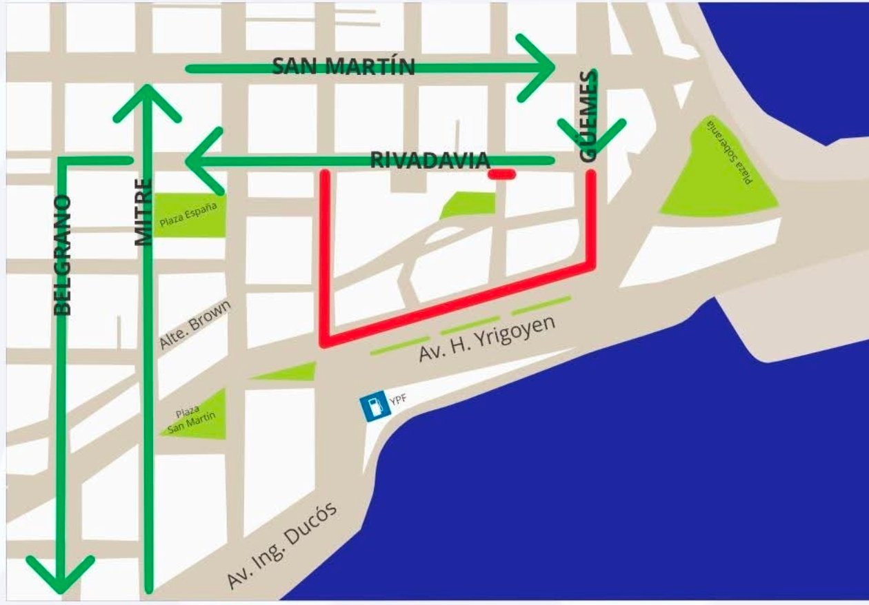 Según se informó, el tránsito liviano en sentido sur-norte será desviado por avenida Ducós, Mitre, San Martín y Ruta 3, mientras que en sentido norte-sur deberá circular por Güemes, avenida Rivadavia, Belgrano y Ruta 3.