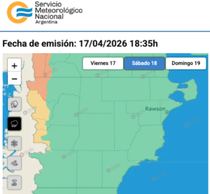 Según información oficial del Servicio Meteorológico Nacional (SMN), algunas zonas de la provincia del Chubut podrían tener episodios de lluvia intensa en la jornada del sábado 18 de abril.