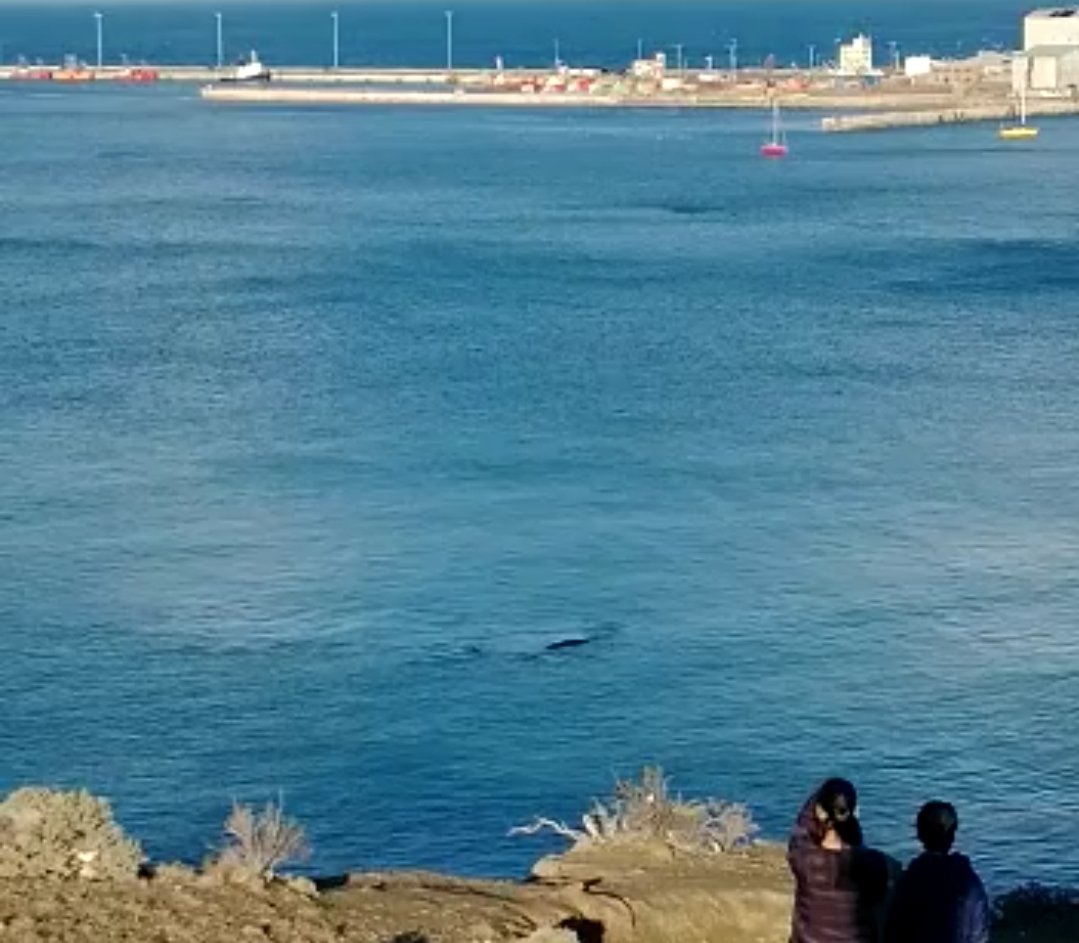 En la tarde de este miércoles, una sorpresiva visita de una ballena en la costa céntrica de Comodoro Rivadavia causó asombro entre las personas que se detuvieron a sacar fotos del animal.