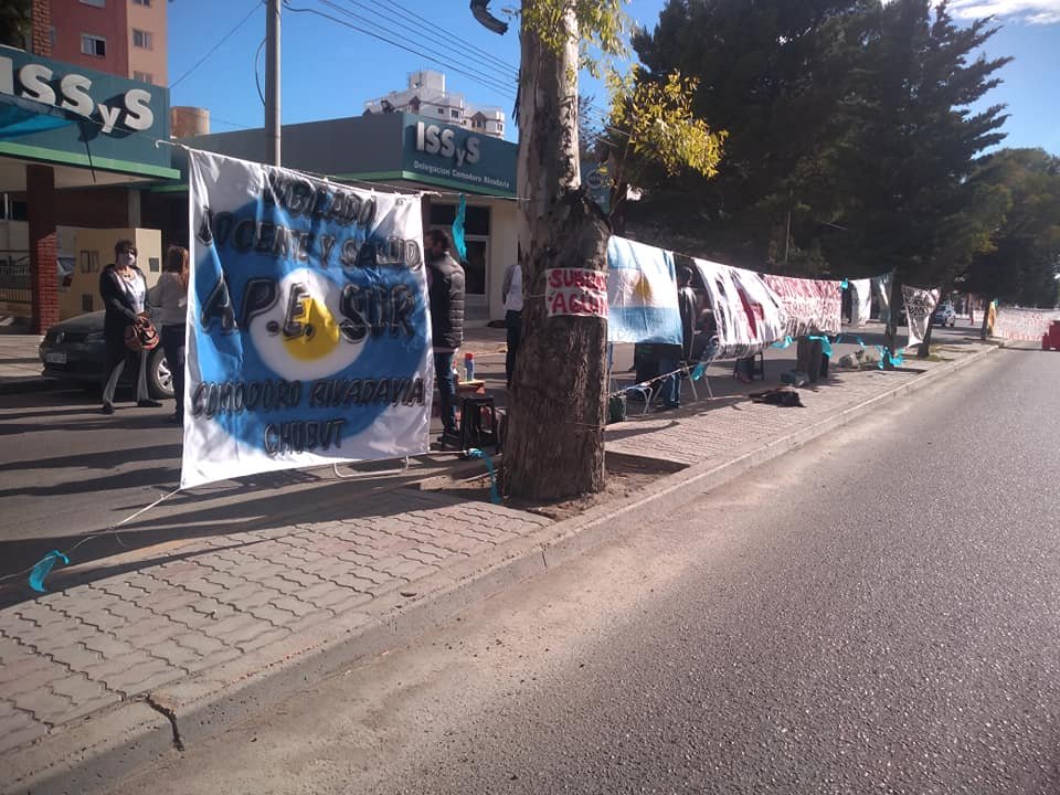 Jubilados provinciales reclaman el cumplimiento de sus salarios e iniciaron un acampe afuera de la sede del ISSYS en la colectora de la Avenida Yrigoyen. En el lugar los jubilados afirman que mantendrán la medida de fuerza hasta tener novedades del cobro de los dos meses de salario y del aguinaldo.