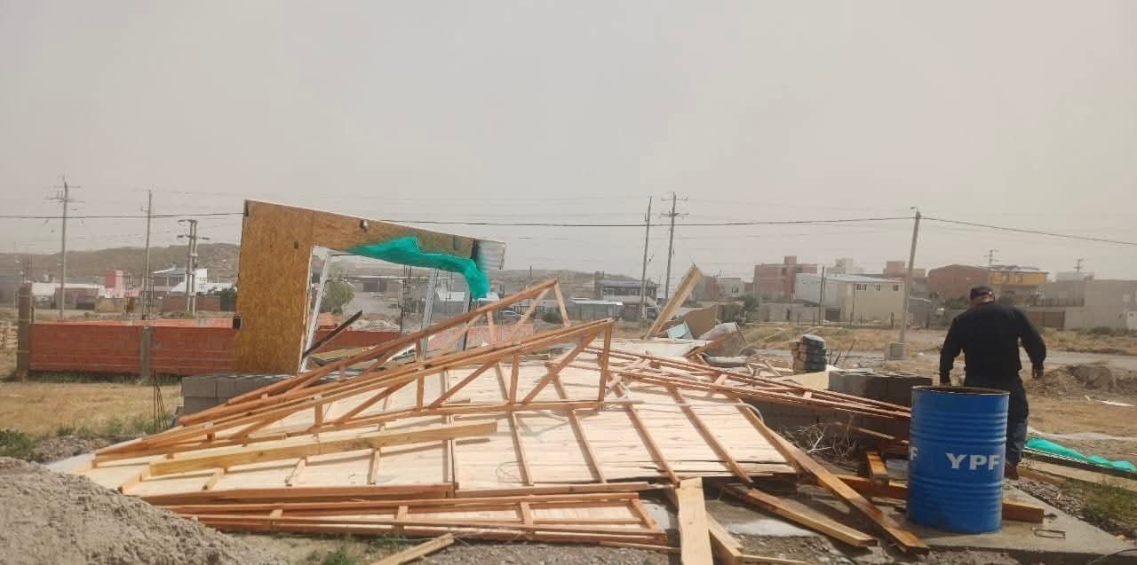 Para sus propietarios, el sueño de la casa propia se derrumbó en minutos luego de que el viento patagónico alcanzara los 150 km/h y derrumbara sin esfuerzo la vivienda familiar.