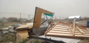 Otro de los grandes daños causado por las terribles ráfagas de viento que azotaron a Comodoro Rivadavia y la región este lunes fue en una casa prefabricada en Km 5, donde la vivienda fue destruida completamente.