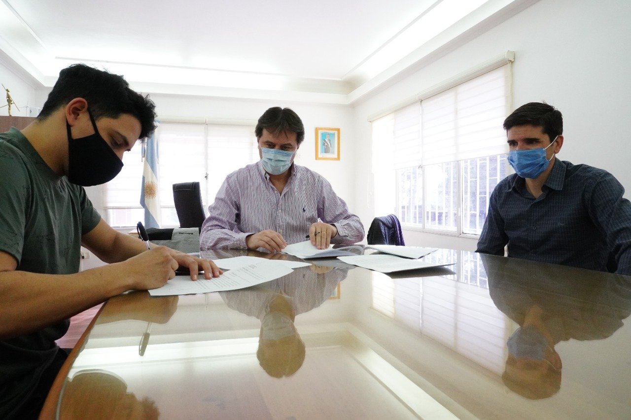 El Intendente de Rada Tilly, Luis Juncos, y el Secretario de Deporte y Turismo, Jorge Mérida, recibieron al Presidente de la Asociación de Surf de Rada Tilly (ASURT), Giuliano Cambareri para formalizar el acuerdo.
