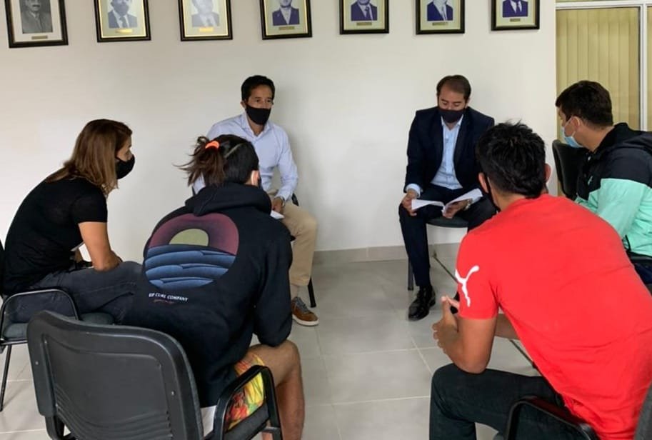 En la jornada del viernes, el concejal de Rada Tilly al Frente, Carlos Barrios Daporta recibió en instalaciones del Concejo Deliberante de la villa balnearia al Director General del IGJ, el Dr. Franco Mellado, con el cual se reunieron con integrantes de la Asociación de Surf local.