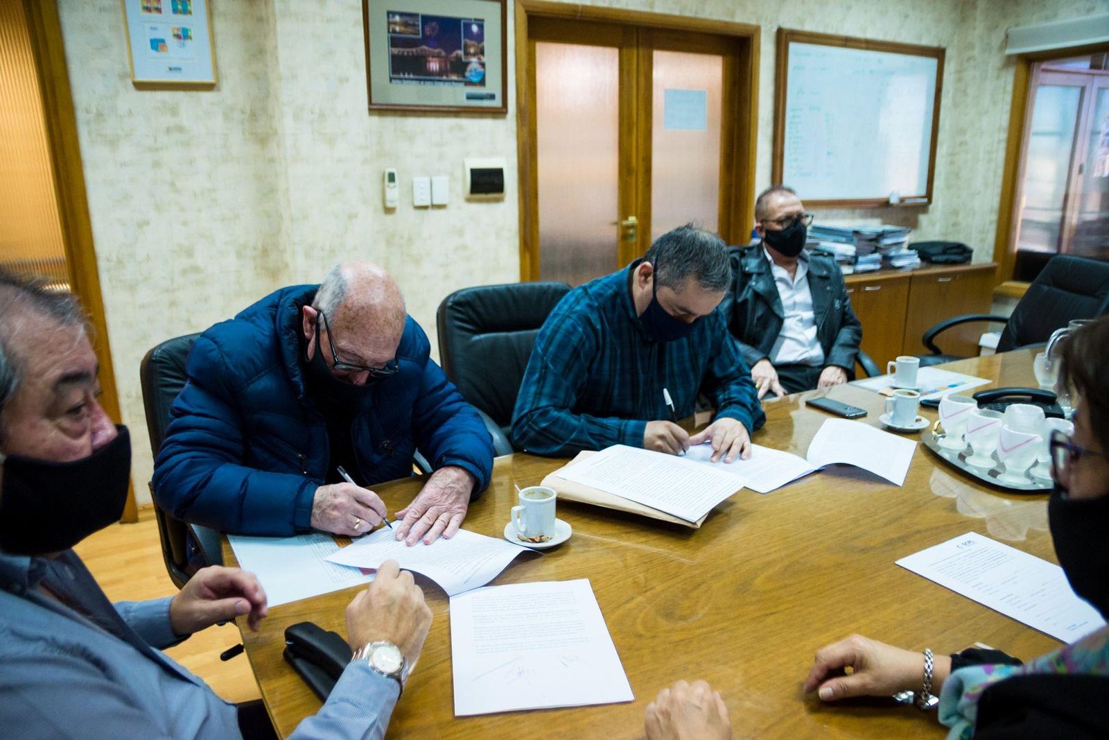 Hoy por la mañana, la SCPL firmó un convenio de recaudación con la Asociación Civil Pro-Ayuda Policial en la Sala de Sesiones de la entidad cooperativa. Guillermo Jones, presidente, Carmen Casas, secretaria y Emilio Llancapán, tesorero por parte de la asociación y Carlos Luque, presidente, y Guillermo Costes, secretario, por parte del Consejo de Administración de la SCPL, rubricaron el convenio que le permite a la asociación policial recaudar el dinero de sus socios a través de la Cooperativa. También participó del encuentro el Jefe de la Unidad Regional de Comodoro, Ricardo Lienan.