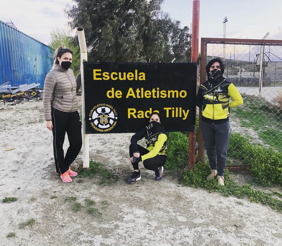 La Escuela de Atletismo de Rada Tilly a cargo de las profesoras Valeria Arias, Maria del Mar Fernandez Bonfili y el profesor Walter Edwards.