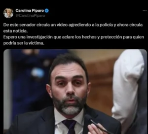 “De este senador circula un video agrediendo a la policía y ahora circula esta noticia. Espero una investigación que aclare los hechos y protección para quien podría ser la víctima. No quiero más un país con impunidad para los poderosos de turno”, señaló la diputada.