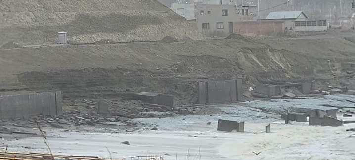 Ayer lunes las imágenes compartidas por la vecinal de Mosconi magnificaban los destrozos que sufrió el reciente muro de contención construido en el Camino Ara San Juan en el norte de Comodoro Rivadavia.