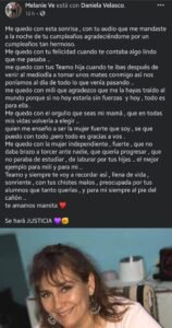 En medio de la tristeza infinita por el asesinato de Daniela Velasco, su hija Melanie, compartió a través de sus redes públicas una carta recordando a su mamá.