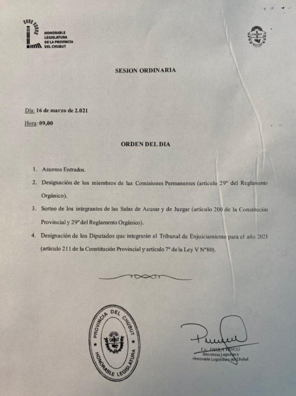 Según el Orden del Día establecido, la sesión del martes se iniciará a las 9 e incluirá la designación de los miembros de las Comisiones Permanentes; el sorteo de las Salas de Acusar y de Juzgar; y la designación de los diputados que integrarán el Tribunal de Enjuiciamiento.