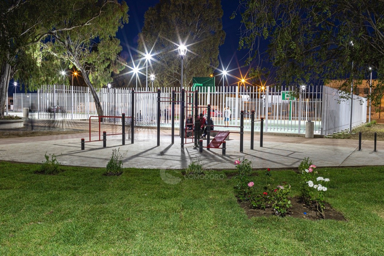 El parque reinaugurado cuenta con juegos con piso de goma, una cancha de bochas, playón deportivo, espacios verdes y luminarias para que el lugar se pueda disfrutar de manera segura.