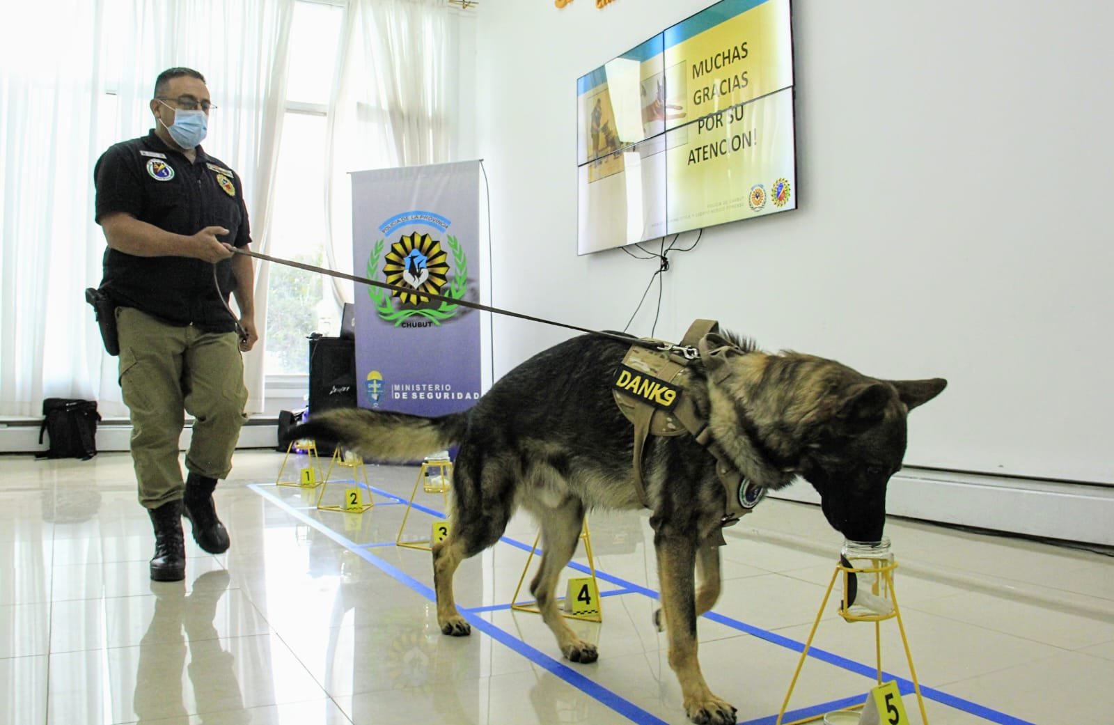 Por su parte, la jefa de la División de la Policía Científica Rawson, comisario Analía Medina, detalló que “nuestro can Danko es el primer perro de la ‘Odorología Forense’ de la Policía del Chubut”, y añadió: “Esta presentación es importante para los ámbitos judiciales y los Ministerios Públicos Fiscales, para que tengan en cuenta la existencia de una herramienta tan útil como ésta para la investigación criminal, la cual se encuentra integrada dentro del área Criminalística y Cuerpo Médico Forense de la Policía del Chubut”.