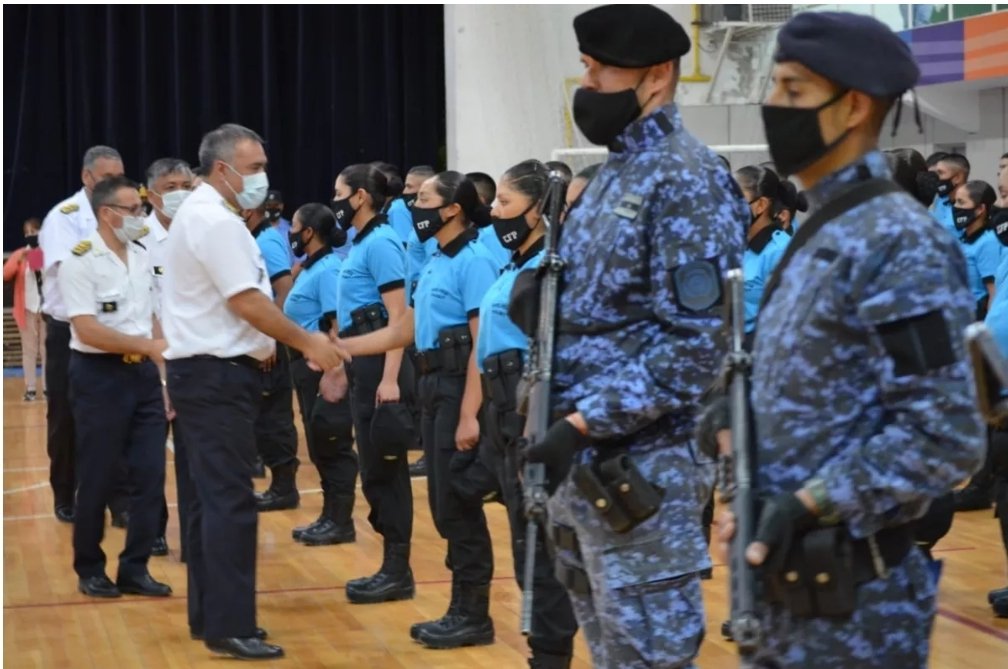 El acto oficial tuvo lugar esta mañana en el Club Huergo de Kilómetro 3. Estuvieron presentes además integrantes de la Plana Mayor de la Policía, el director del Centro de Formación, Martín Guajardo; autoridades judiciales y de distintas fuerzas de seguridad, funcionarios municipales, entre otros.