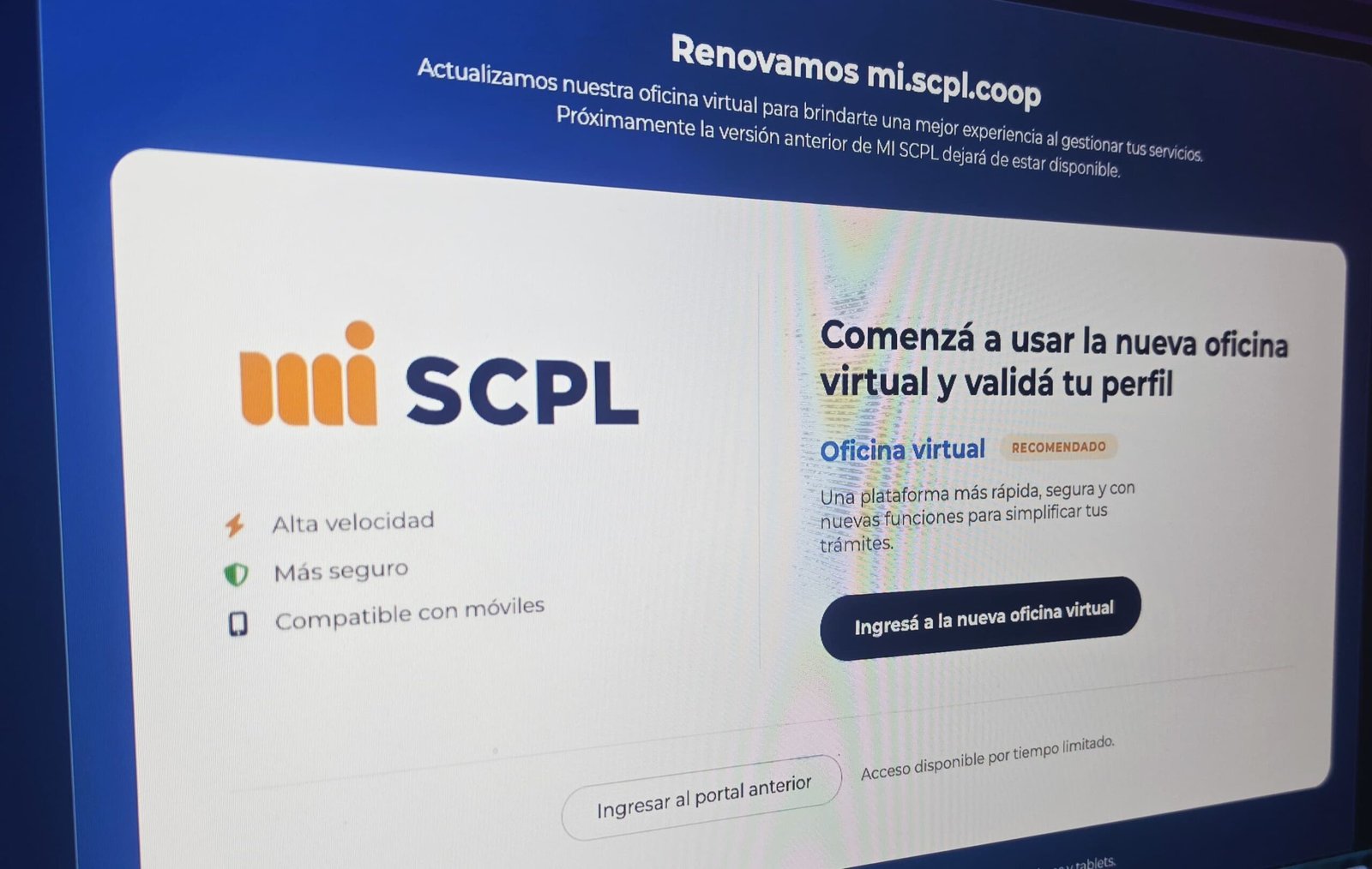 Desde la SCPL invitamos a toda la comunidad a utilizar el nuevo portal, en el siguiente enlace mi.scpl.coop, para descubrir sus funcionalidades. En simultáneo se compartirán tutoriales a través de nuestras redes sociales oficiales, con el objetivo de acompañar a los usuarios en el proceso de registro, acceso y uso de la plataforma.