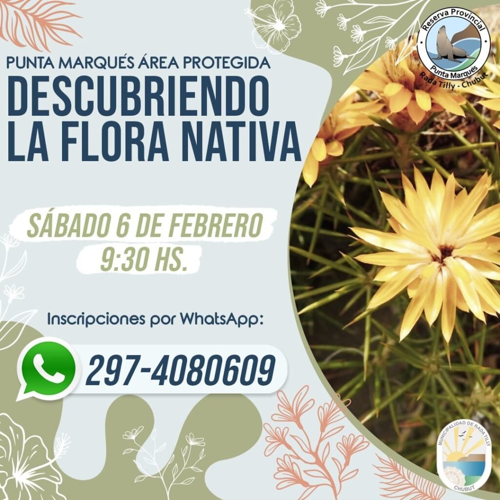 El programa propone recorrer los senderos del cerro de Punta del Marqués para conocer la flora nativa. Allí se cuenta con la presencia de estudiantes avanzados de Biología de la UNPSJB.