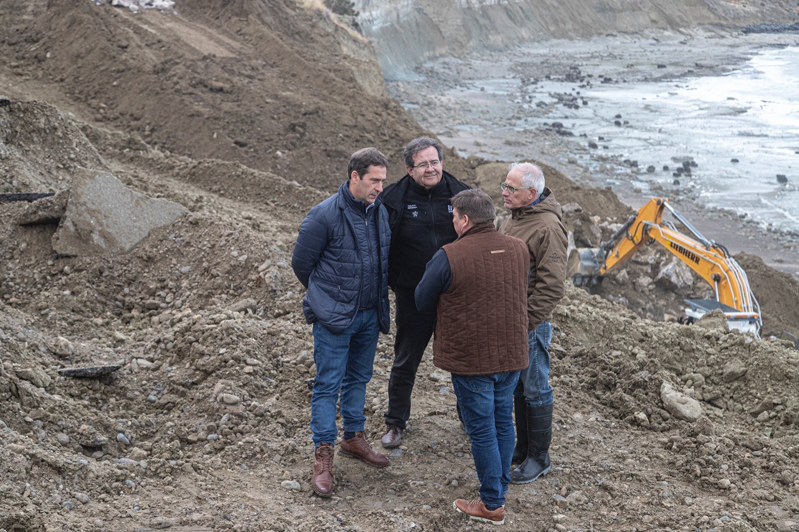 El intendente Juan Pablo Luque junto a Julio Otero de Vialidad Nacional, recorrieron este jueves el sector de la Ruta Nacional N° 3, donde trabajan maquinas viales para recomponer el talud desde la costa. Llegaron las rocas que se utilizarán para construir una base compacta no erosionable. En tanto, se destacó que la marejada del miércoles no causó ningún tipo de daños.