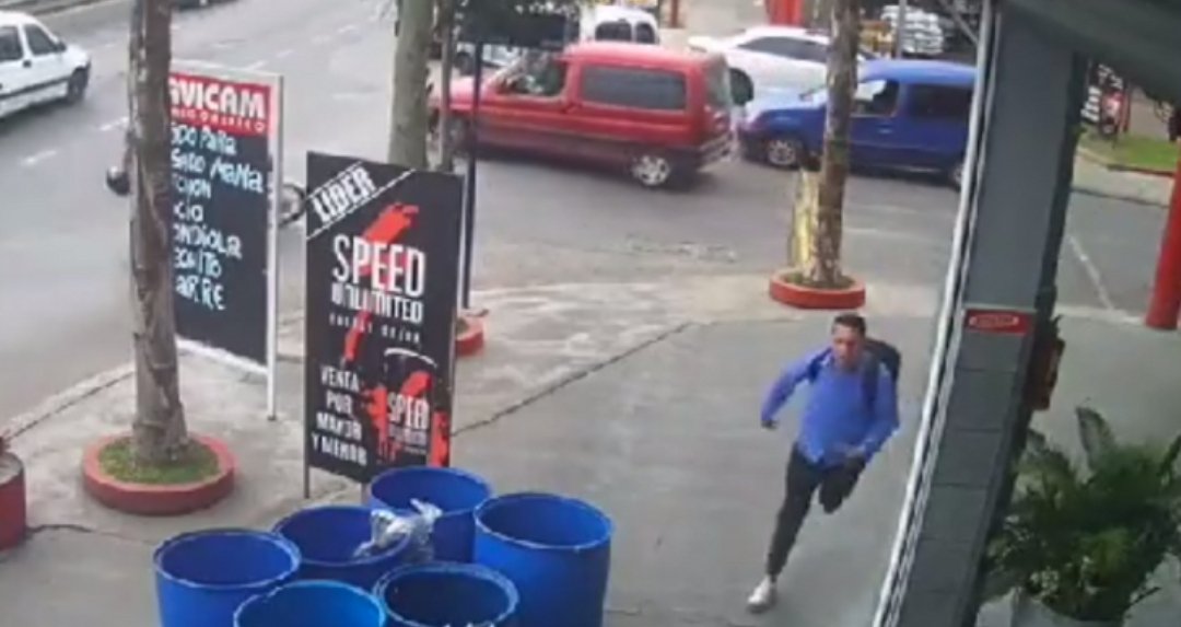 Los hechos quedaron captados por las cámaras de seguridad del negocio de alimentos. En las imágenes, se puede observar cómo, poco después del mediodía, el joven pasó rápidamente por la puerta del local con su uniforme de trabajo y, detrás de él, salieron, al menos, cinco empleados del lugar corriendo en la misma dirección.