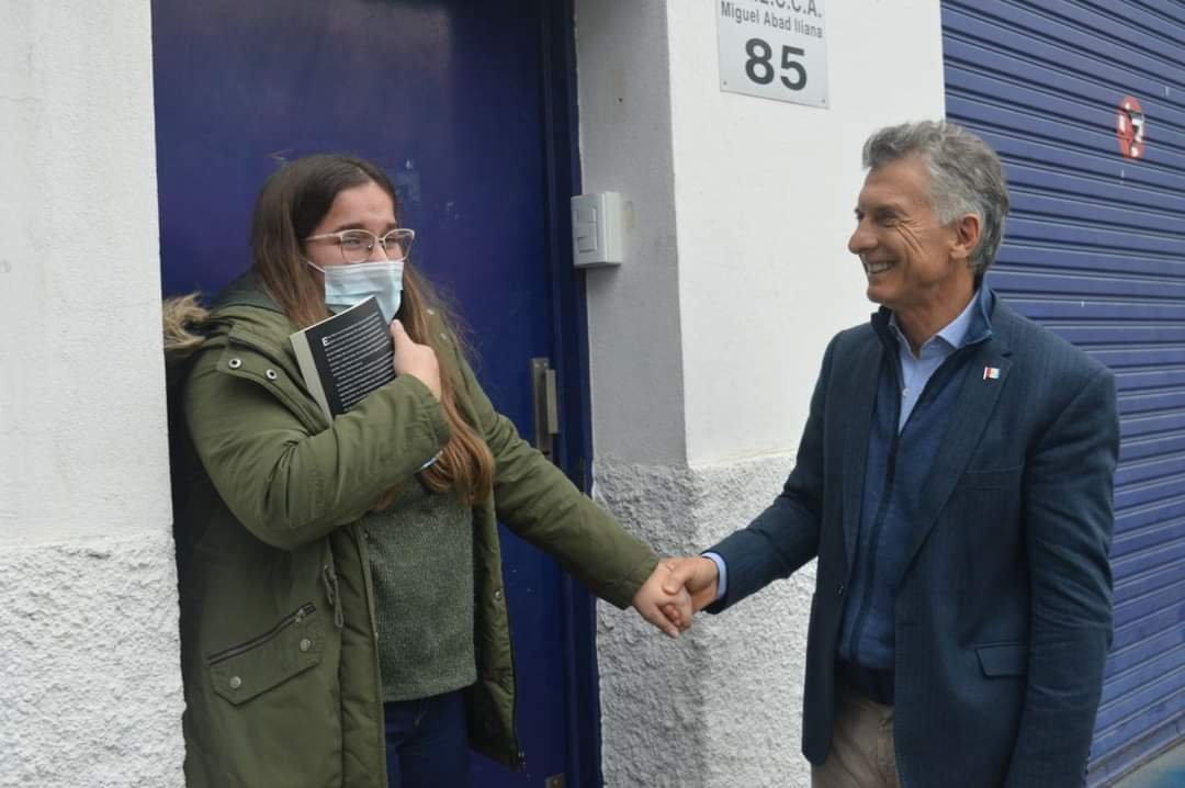 Macri que se vacunó hace dias en Miami, reapareció con una fanática a quien en persona le entrego un libro de su autoría «Primer Tiempo».