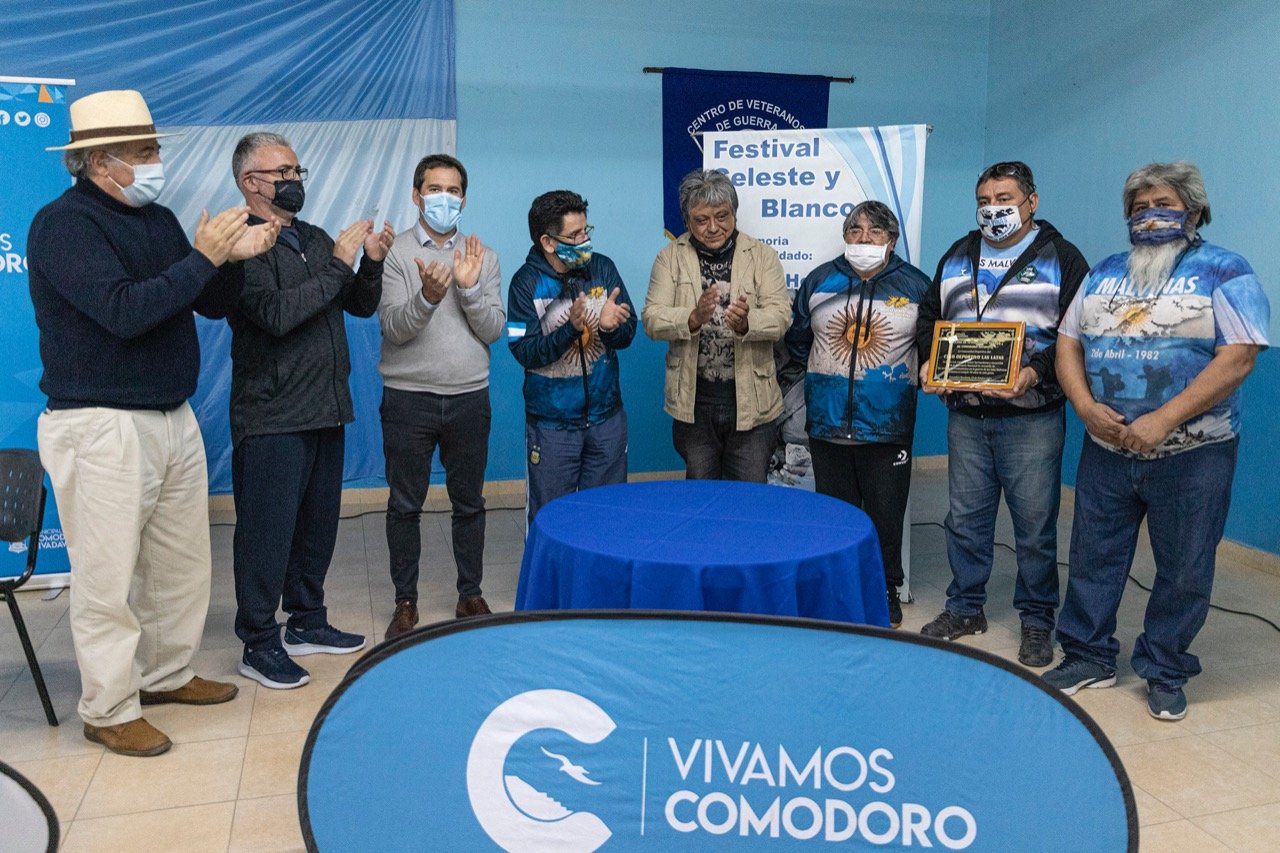El Municipio y el Club Las Latas le entregaron una plaqueta al Centro de Veteranos de Guerra de Comodoro Rivadavia en reconocimiento por su compromiso con la patria y la sociedad.