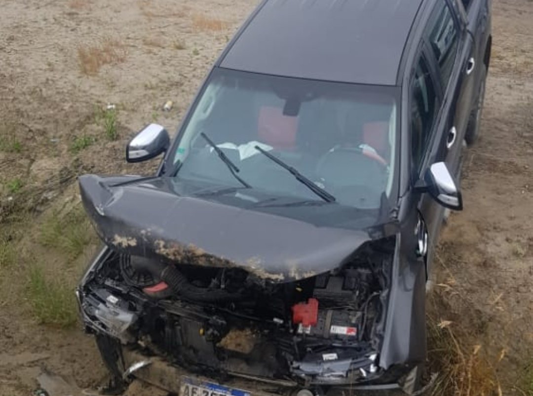 Este sábado cerca de las 8 de la mañana, una camioneta terminó chocando en una rotonda de Km 5, a metros del cementerio.