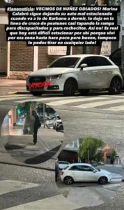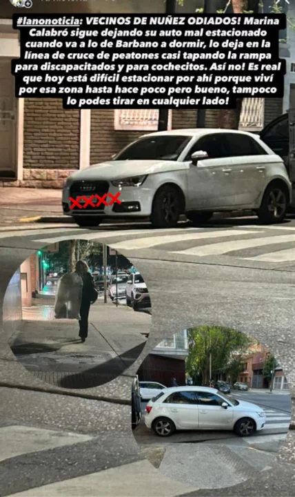 “#lanonoticia: ¡VECINOS DE NÚÑEZ ODIADOS! Marina Calabró sigue dejando su auto mal estacionado cuando va a lo de Barbano a dormir, lo deja en la línea de cruce de peatones casi tapando la rampa para discapacitados y para cochecitos. Así no!”, expusó la panelista de Puro Show.