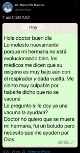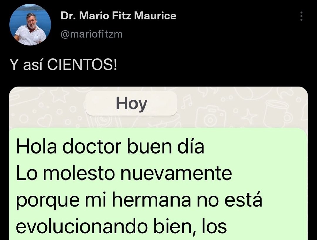 Mario Fitz Maurice muestra en esa captura de pantalla cómo el paciente describe la situación de su hermana: