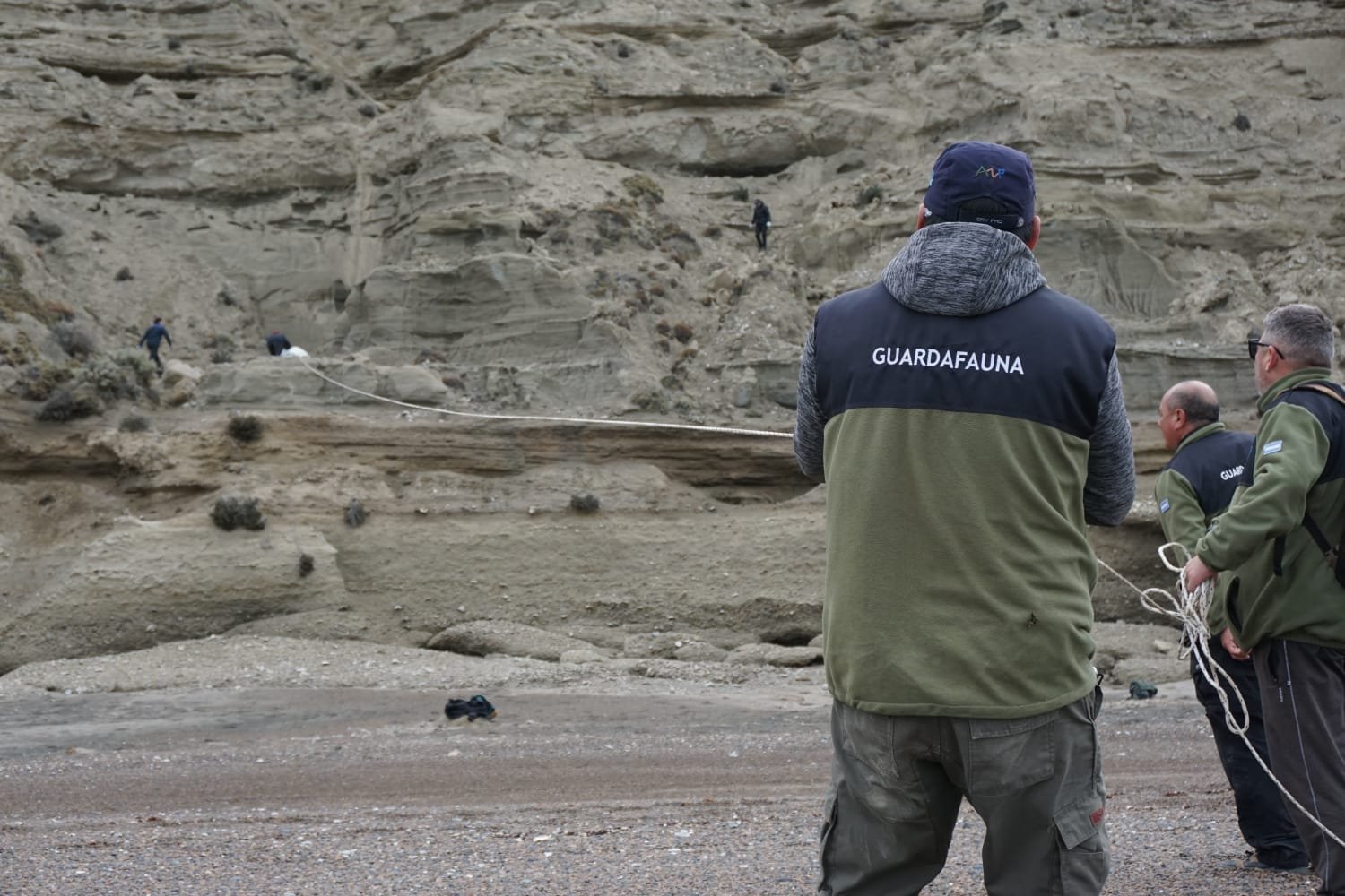 «A medida que se avanza en la limpieza y embolsado de cajones se va complicando la operatoria, lleva mucho tiempo llegar y estamos acotados con el tiempo de trabajo in situ principalmente por los tiempos de la marea y los acantilados de gran altura», indicó la subsecretaria de Conservación y Áreas Protegidas, Nadia Bravo.