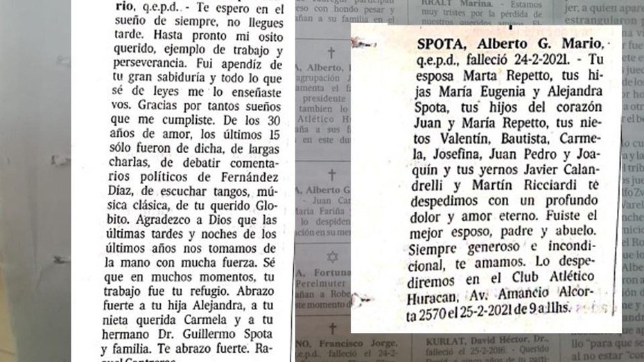 querido» y remarca momentos íntimos compartidos. Pero en el siguiente aviso aparece su mujer «oficial» con un saludo también muy sentido y nombrando a sus hijos.