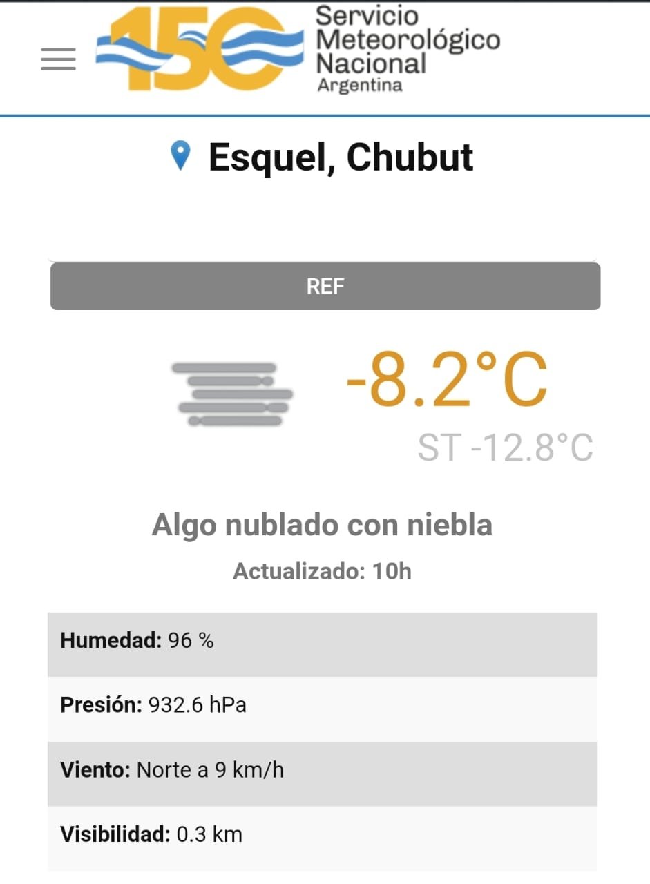 Exactamente -12.8°C de térmica acompañado de una temperatura de -8.2°C según datos oficiales de las 10hs publicados por el SMN.