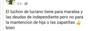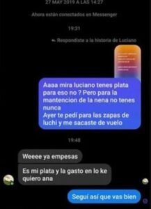 Luego, la mamá de la niña fue por más: «El luchón de Luciano tiene para Maratea y las deudas de Independiente pero no para la manutención de hija o las zapatillas, bien», dijo y compartió la charla que tuvo con el padre.