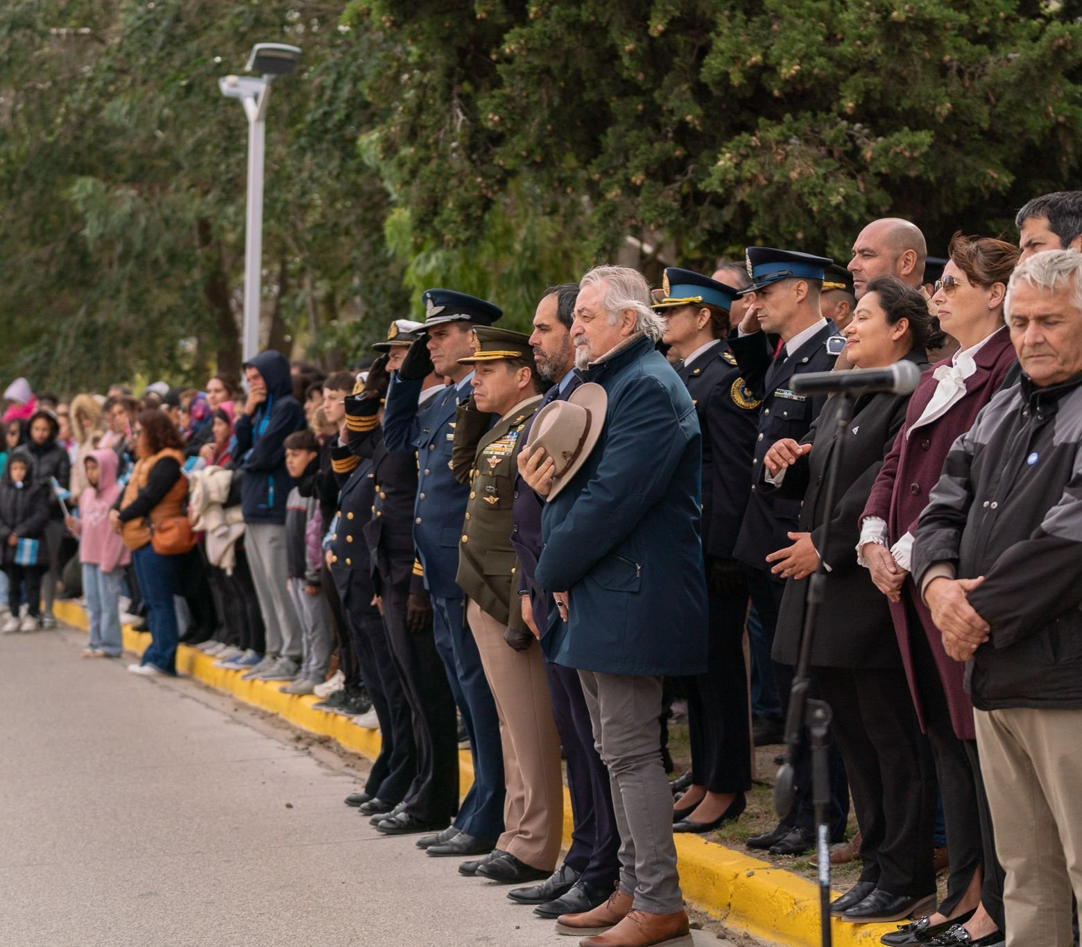 Pasadas las 13:30 horas, el intendente y el viceintendente estuvieron presentes en la plaza principal, ubicada en la calle Crucero General Belgrano y Ruta N°3, del barrio Rodríguez Peña. En la ocasión además participaron los integrantes de la Unión de Excombatientes de Malvinas y Centro de Veteranos de Guerra de Malvinas, directivos de los hospitales Alvear y Regional, autoridades de la Universidad Nacional de la Patagonia San Juan Bosco (UNPSJB), el vecino Mario Díaz, veteranos y familiares.