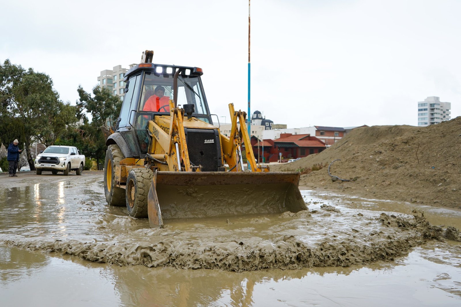 En este sentido, Macharashvili resaltó que “desde que comenzó el temporal está todo activado para asistir y atender todas las necesidades. Todo lo que está disponible en este Municipio está abocado al protocolo de contingencia. Estamos en conocimiento y ocupándonos de los colapsos que se suscitaron tanto en zona sur y zona norte, que ya hoy con la merma de la lluvia y el drenaje de los sumideros y canales, se puede decir que hay lugares en los que ya escurrió bastante bien. Hay otras zonas- agregó-, que son las críticas como es la avenida Chile al fondo donde todavía hay que hacerlo de forma mecánica porque no escurre en forma natural y en los tiempos que queremos y necesitamos”. En cuanto a la situación del canal evacuador de la Roca, el intendente indicó que “colapsó porque vino una carga grande de nieve y agua y se conjugó con la marea alta que hace de tapón y cierra la salida, generando esto”.