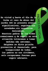 «En virtud que hasta el día de la fecha -por lunes 21 de noviembre de 2022- el caso de abuso del Jardín 406 no presenta  avances significativos, seguimos sin novedades, sin respuestas favorables» indican los padres en el inicio del comunicado que dieron a circular por redes sociales.