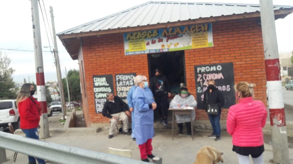 Trabajadoras de salud del Área Programática Sur improvisaron un vacunatorio afuera de un almacén en el barrio Pietrobelli «Con el objetivo de llegar a...